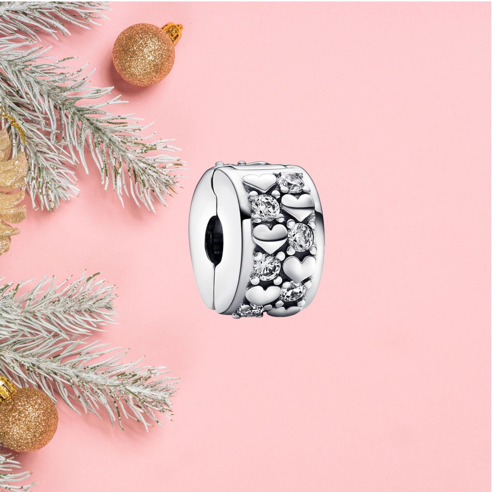 Heart Clip Sterling Silver Charm, Cubic Zirconia Accents
