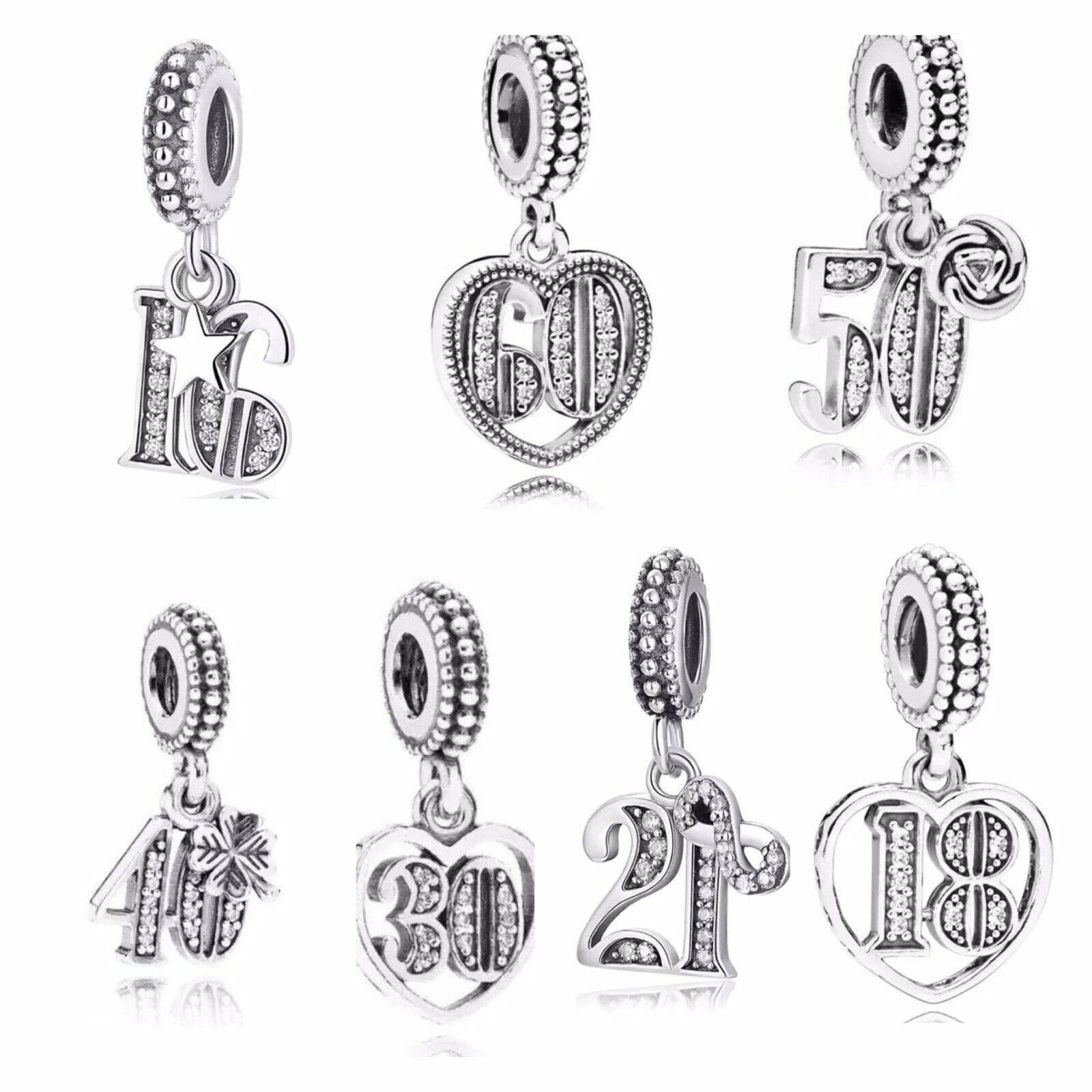 Sterling Silver Birthday Number Dangle Charm, Women's Bracelet Charm